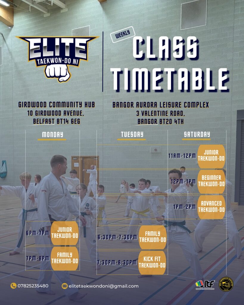 Beginner Taekwon-Do is designed to introduce you to this dynamic martial art, providing a safe and supportive environment to learn the fundamentals. As a beginner you’ll learn stances, blocks, punches and kicking techniques building a solid foundation in Taekwon-Do. Under the guidance of our experienced instructor, you’ll gain valuable self-defence skills, learning how to effectively protect yourself against potential threats. This class is for those who want to start their Taekwon-Do journey following the full International Taekwon-Do Federation (ITF) syllabus. The class will be for students from a White belt beginner up to and Blue tag.